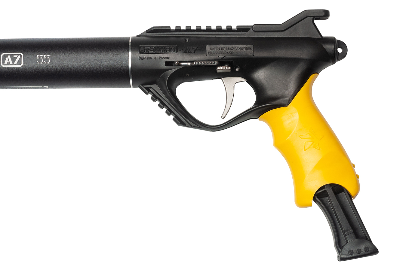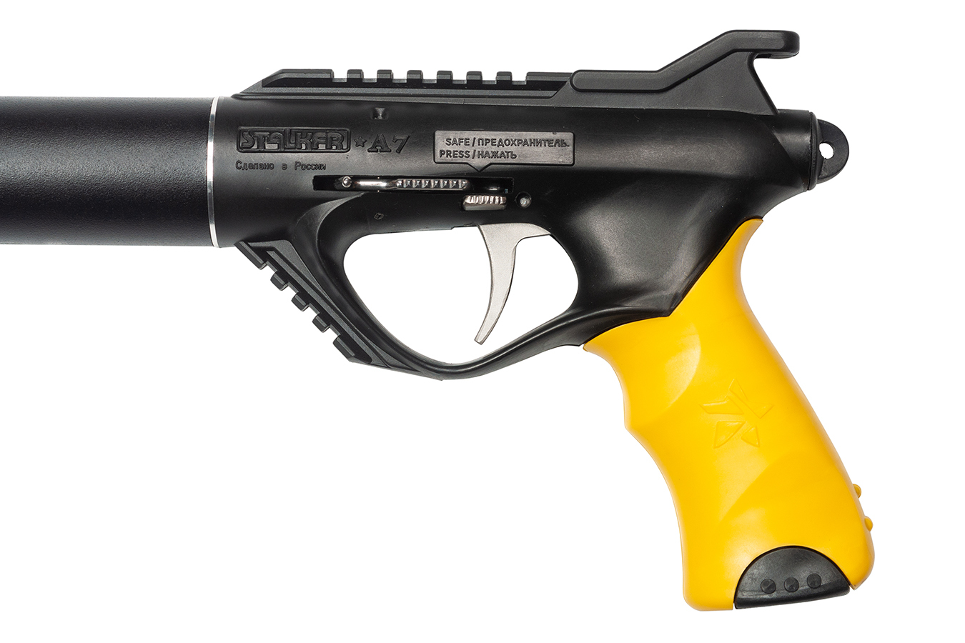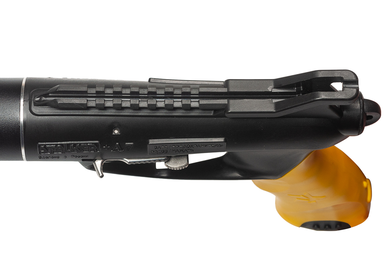 Подводное ружье серии «Сталкер А7», несмотря на свою непростую историю, продолжает завоевывать все новых поклонников. Ружье теперь на все 100% создано и производится в России. Серия "А7" - наследник, проверенного временем, высококлассного ружья - «Сталкер АК 7,62». Идеи, заложенные в конструкцию «Сталкер АК 7,62», сразу после выхода в серию, привлекли внимание опытных подводных охотников и стрелков.